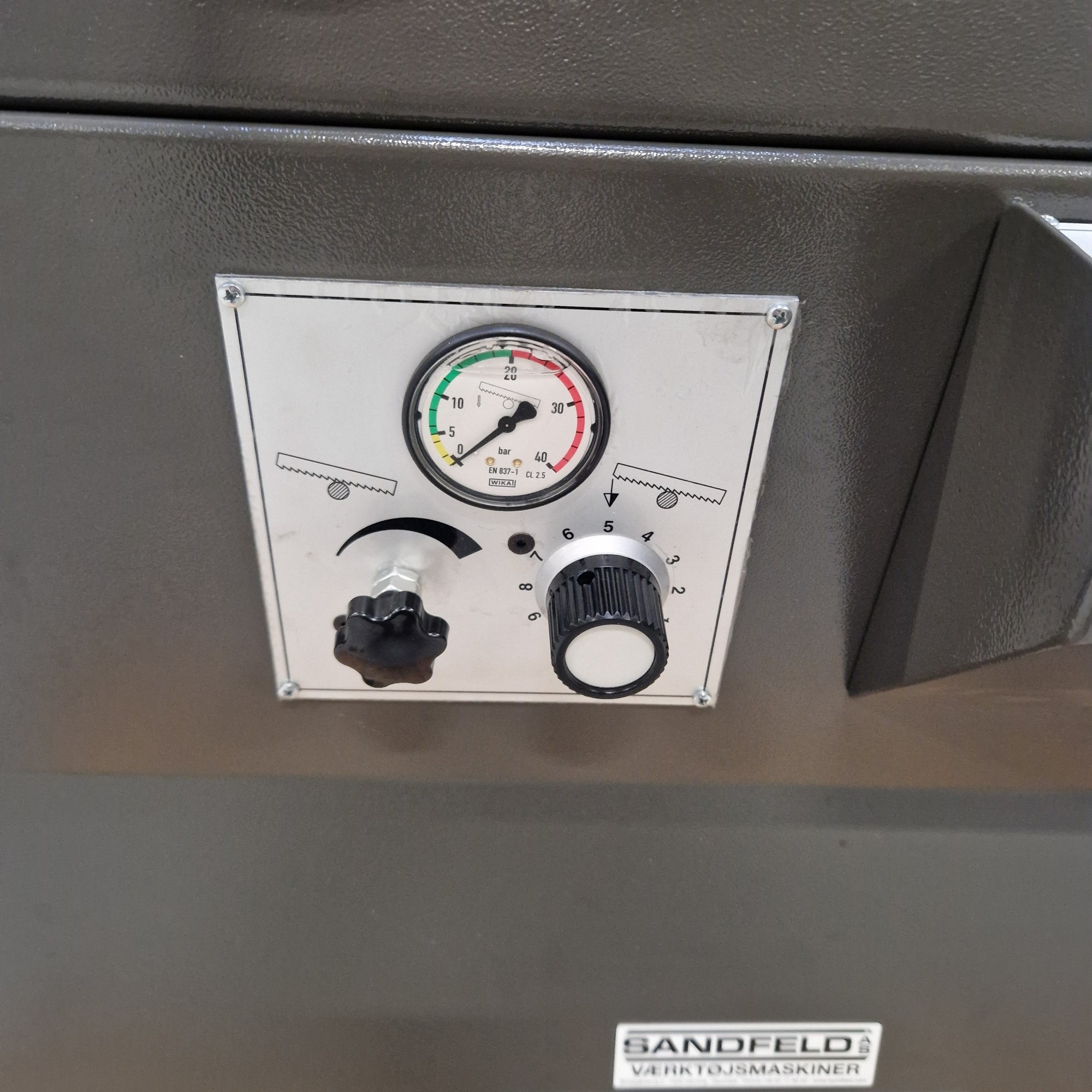 Savbuen kører med ilgang ned til emnet og returnerer automatisk efter endt snit til ca. 10 mm. over emnet, og skruestikket åbner.