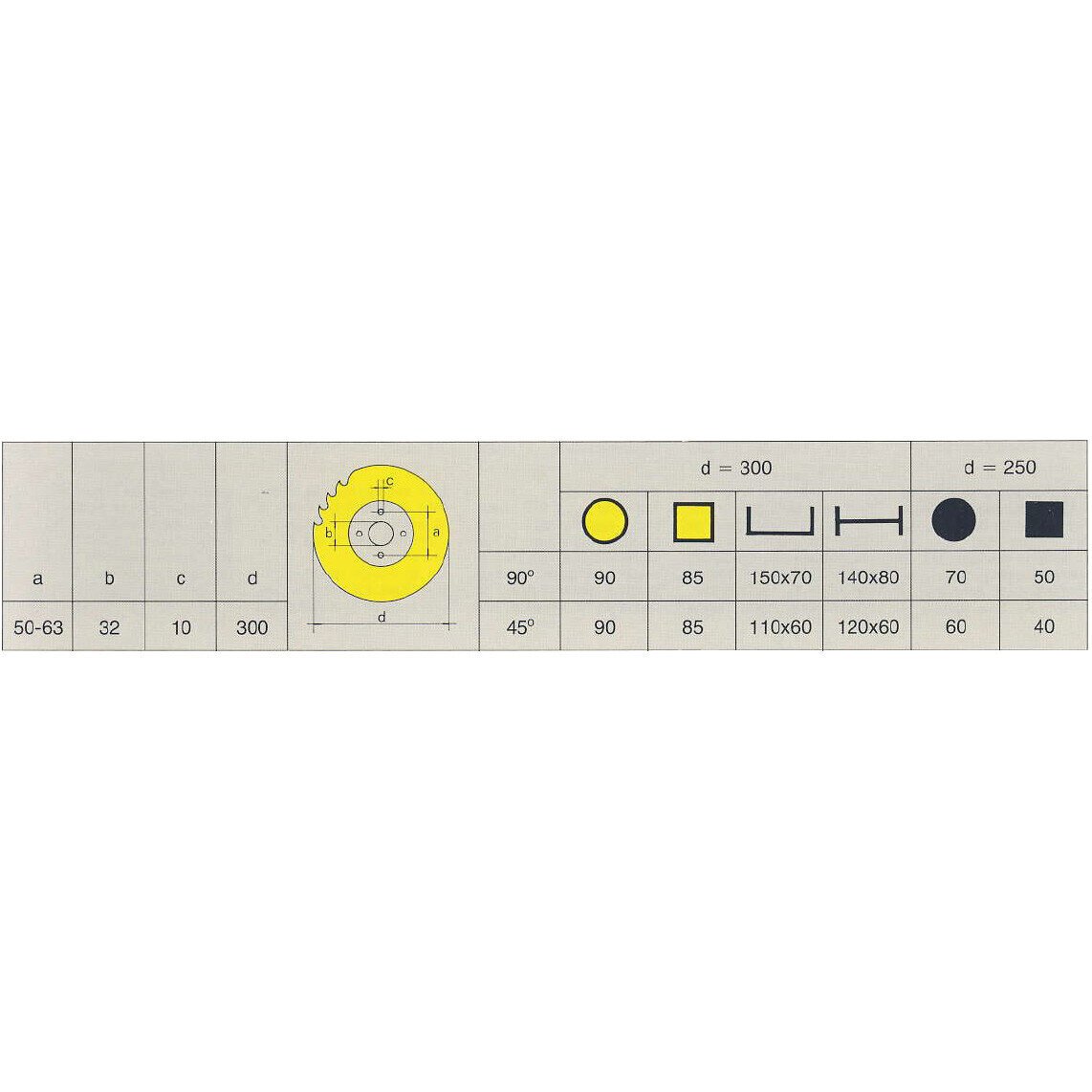 Saver 45° til højre og 60° til venstre. Kapaciteter er opgivet efter Ø300 mm. klinge, maskinen er monteret med Ø250 mm. klinge.