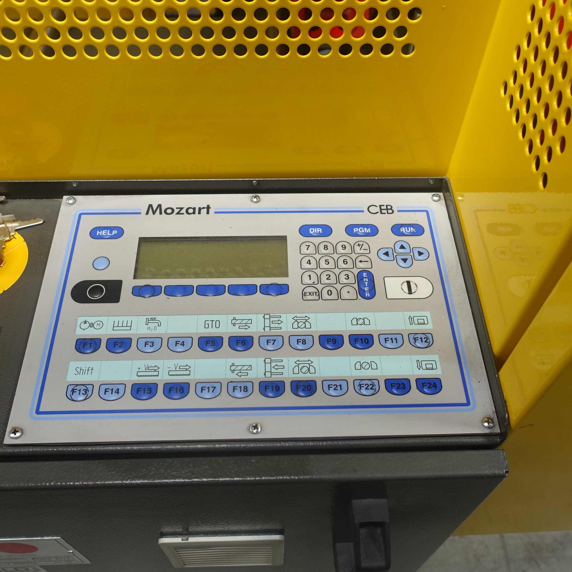 With Mozart NC control, fast approach arm, ILC oil mist cooling unit, hydraulic bundle clamping, chip conveyor, motorized chip brush and 4000 mm. infeed roller track