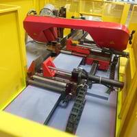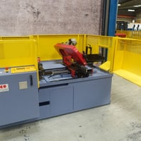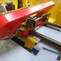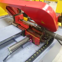 Med ilgangsarm, spåntransportør og automatisk smigskæring til begge sider. Efter endt programmering drejer savbuen automatisk om i første programmerede smig og fører emnet frem, hvilket sker samtidigt. NC styring for programmering af længder og styktal. 1000 mm. flergangsfremføring.