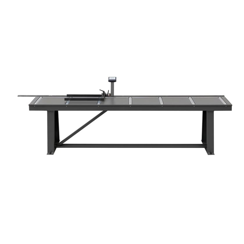 Længdestoppet placeres manuelt, og positionen aflæses på det digitale display.