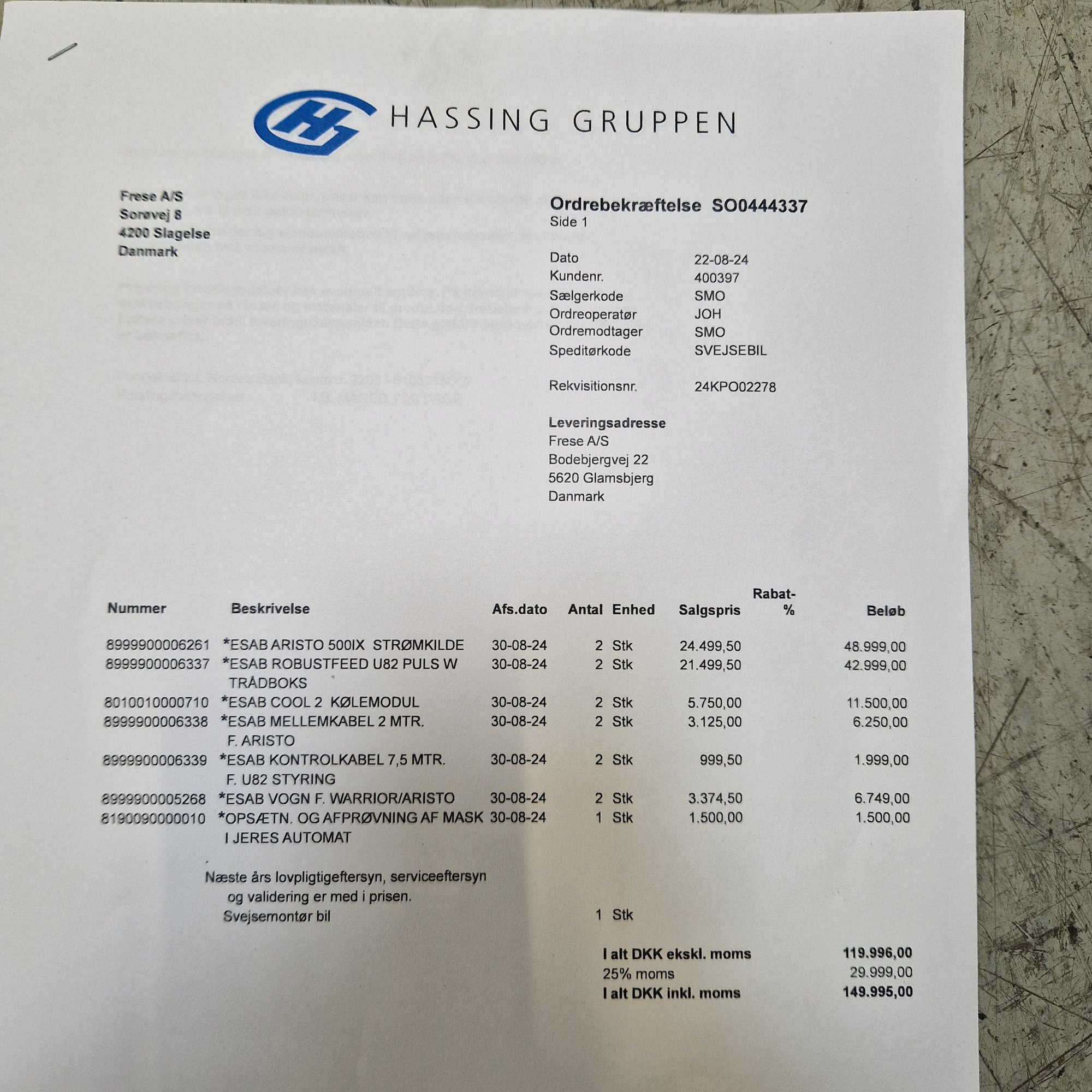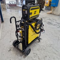 With Esab Robust Feed U8-2 wirebox with pulse and synergic, Cool 2 water cooling unit, 4-wheel wire feed, wagon, and new Esab 4 m. Exeor PSF 420W welding hose.