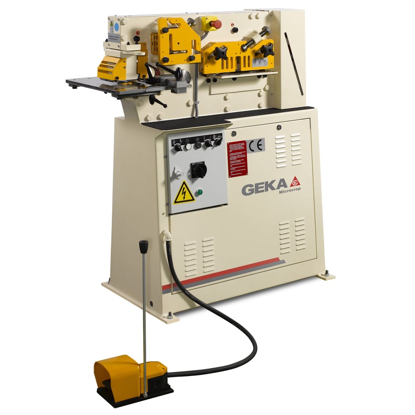 Vores samarbejde startede i 1977, da profiljernssakse stadig blev lavet med det gammeldags svinghjul. I starten af 80'erne havde de hydraulisk maskiner overtaget helt, og i takt med den rivende udvikling, både på den mekaniske og elektroniske side, voksede Geka med opgaven og kom løbende med nye eller opdaterede modeller.