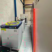 Med Raycus RFL-C20000M-CE resonator, S&A vandkøler, vekselbord, lysgitter omkring vekselbord, 27" LCD skærm, kameraovervågning og skæreskuffer i maskinens længde.