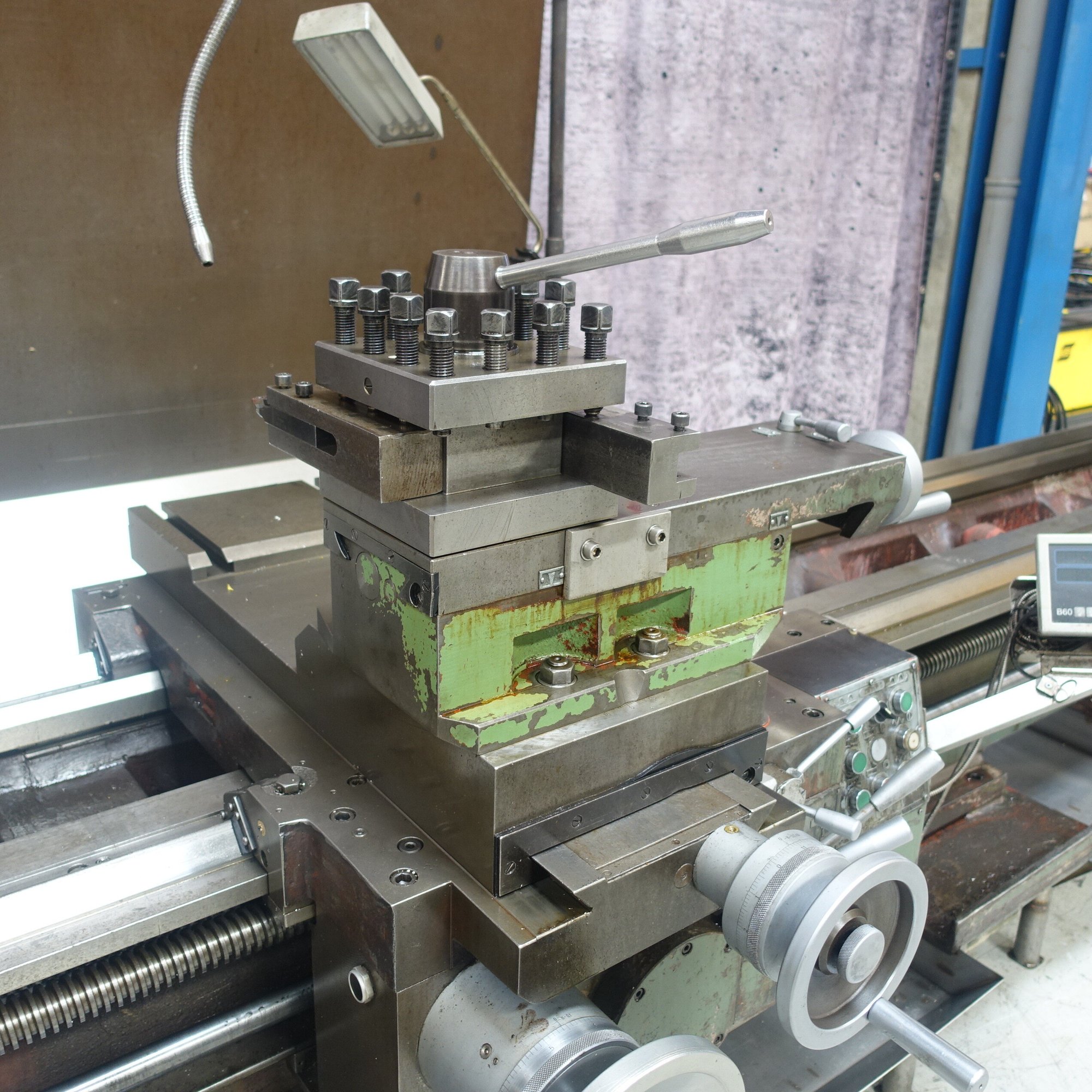 With 2 steady rests, follow rest, spindle stops, Ø600 mm. 4-jaw independent chuck and lots of equipment.
