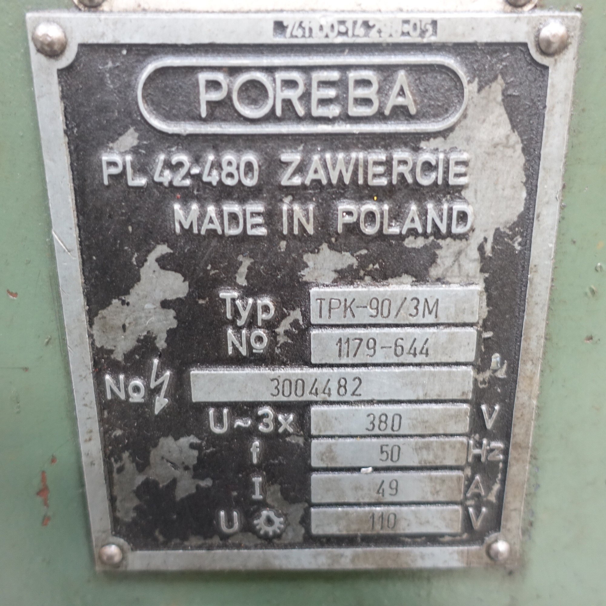 Used Poreba TPK-90/3M lathe - 450 x 3000 x 95 mm.