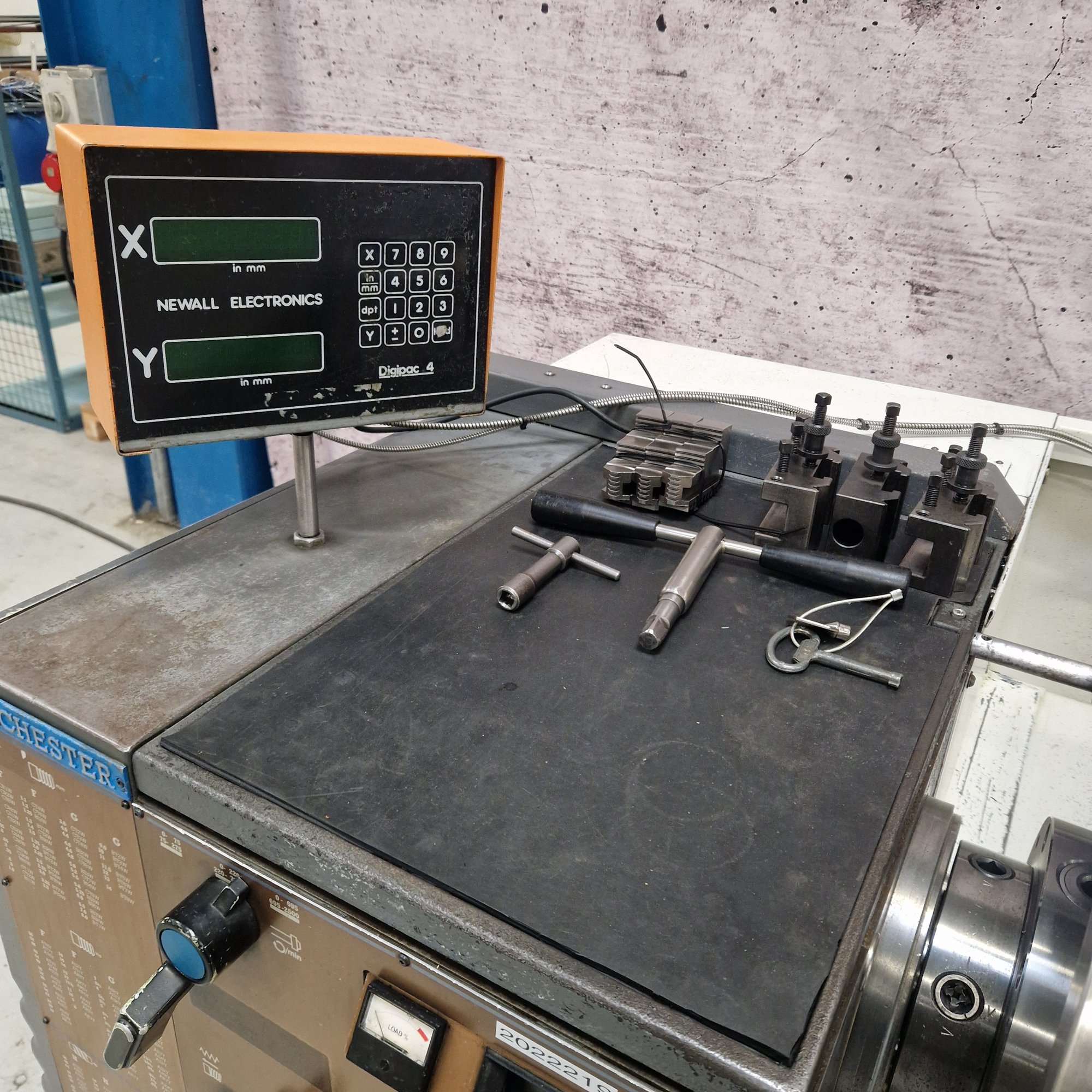 With variable speed in 3 gear ranges 0-2500 RPM, quick tool changer, Bison chuck, bedway stop and thread dial.