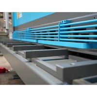 Med 1000 mm. vinkelanslag med lineal og vippestop. 4 skærende kanter på knivene. Bagstoppet kan køre fri af emnet inden klip. Kraftig kulisseført saks.