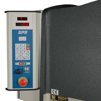 Saksen kan også leveres med Haco SC 200 CNC (TSX modellerne), som automatisk stiller knivvinkel og snitspalte, når operatøren har valgt type af materiale, bredde og tykkelse.